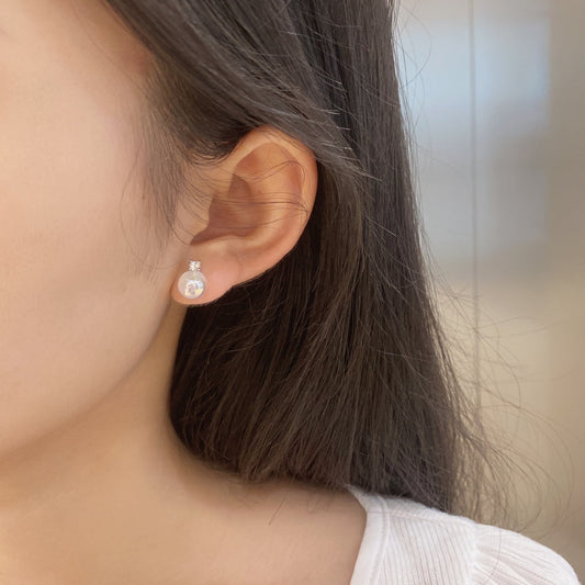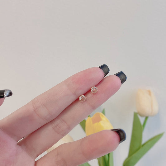 [LORA]Stylish Shiny Round Center Stone Stud Earrings